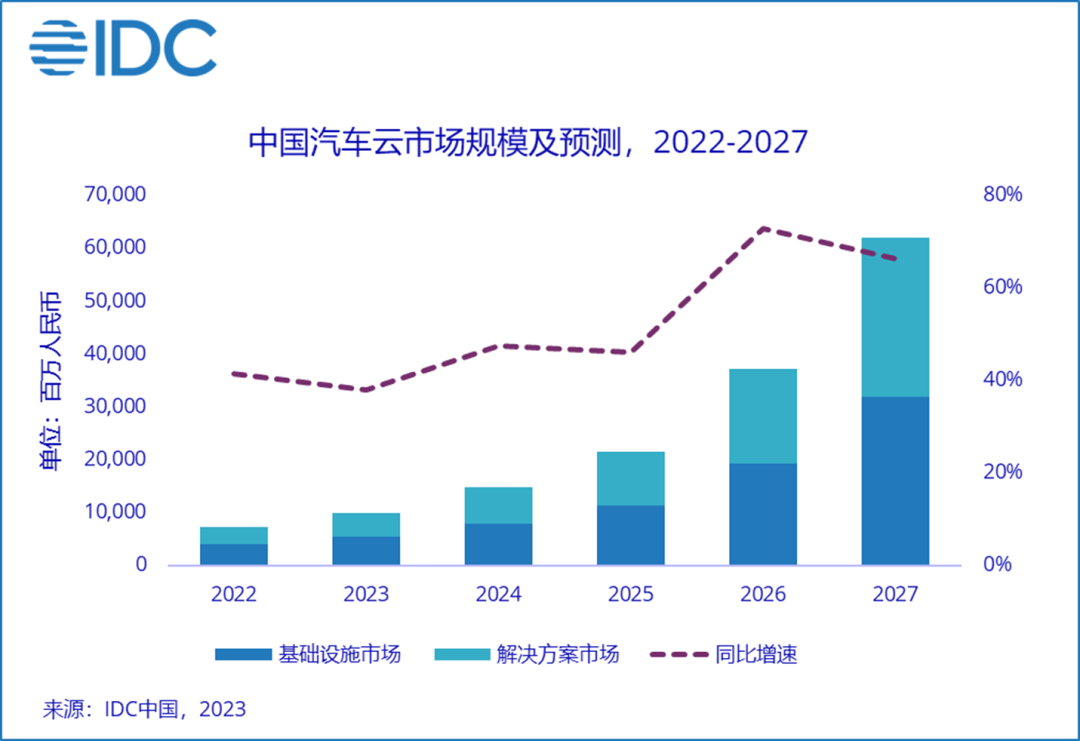 回忆2022年,自动驾驭进入量产元年、车载物联网前装体系逐渐成为标配,推进云核算成为轿车工业的刚需,轿车云商场进入高速增加期。与此一起,我国智能网联轿车加快走向全球,为国内云服务商供给了全新增加极,头部云服务商加码海外云服务建造。随同智能网联轿车进程的加快,方针推进智能网联轿车的数据收集及运用行为逐渐合规化,轿车职业客户正在从头考虑自己的云战略,为国内优异的云服务商供给了新的切入时机。IDC估计,未来五年,该商场的增速将不断创新高,未来五年复合增速达53.6%,2027年全体商场规划将打破600亿元公民币。